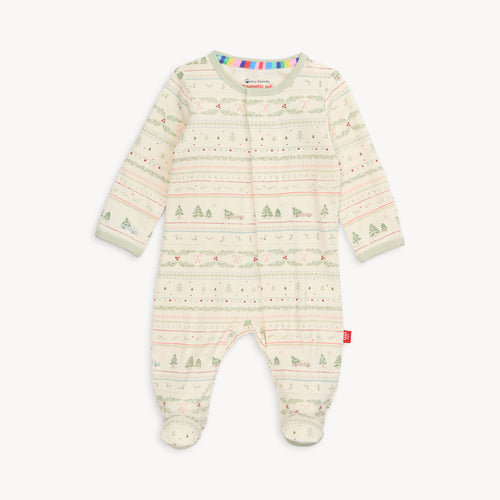 Magnetic Me has a patented magnetic closure system that is hidden and sewn securely beneath the garment plackets. All you need to do is line the magnets up and watch them close! New dads really LOVE Magnetic Me!